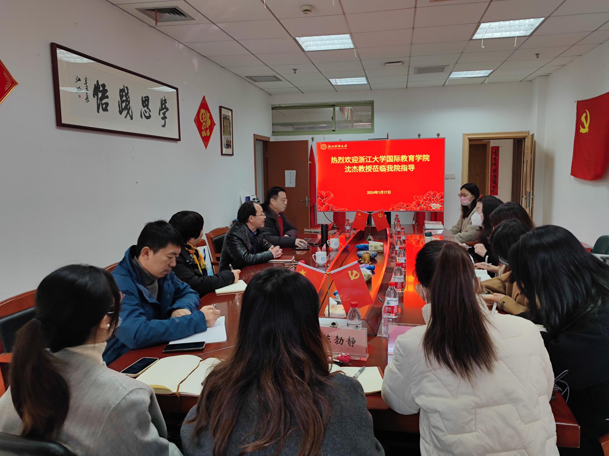 1月17日上午,浙江大学国际教育学院沈杰教授来我司指导交流。沈杰作了《以新发展理念引领来华留学教育高质量发展》的专题讲座。讲座环节由威廉希尔经理柴志贤主持,威廉希尔全体行政老师、相关学院的职工本科和研究生教学秘书聆听了此次讲座。
